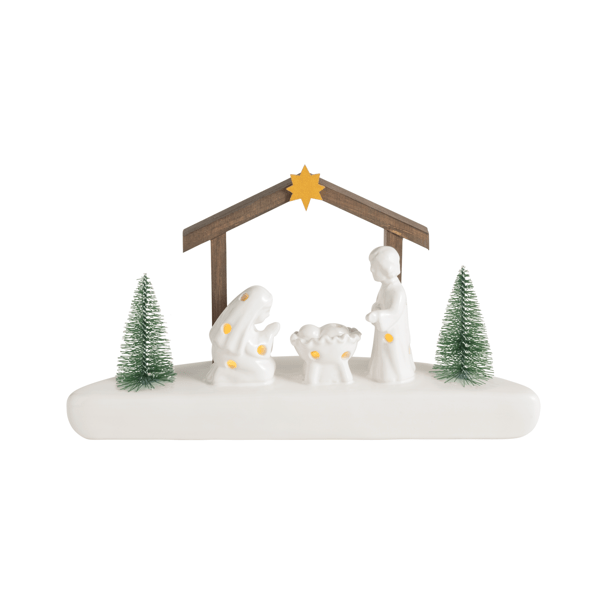 Large Light-Up Lake Sitter. This enchanting light-up LED ceramic lake scene is meticulously hand-painted to capture the serene beauty of a tranquil lakeside setting. Featuring charming bottle brush trees that add a touch of whimsy, this piece is perfect for creating a cozy and inviting atmosphere in any room. Crafted from high-quality dolomite, it ensures durability and a smooth finish. The included battery powers the LED lights, casting a warm and gentle glow that enhances the intricate details of the scene. Measuring 4 3/4" x 10 1/4", it's an ideal size for display on mantels, shelves, or tabletops, making it a delightful addition to your seasonal or year-round decor.