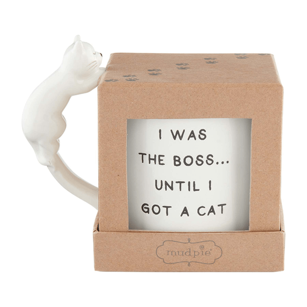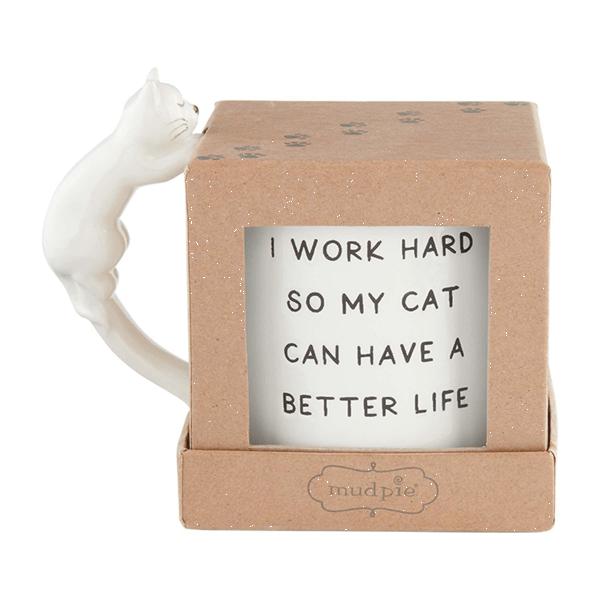 Every cat parent will love this crazy cat lady coffee mug. The ceramic mug features a hand-painted figural cat handle. The front of the coffee mug features a debossed sentiment exterior and paw print on inner rim. The coffee mug features the sentiment "I'm the crazy cat lady they warned you about"