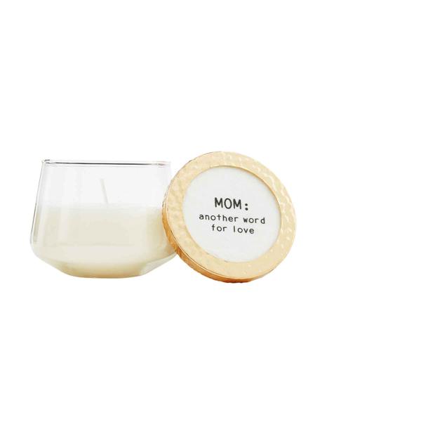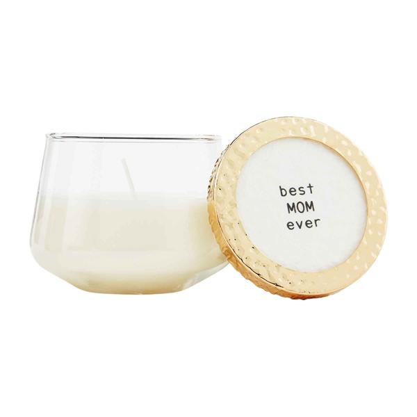 Gift your forever friend this First My Mother Candle. The glass candle features a French Ivory scented wax. The candle features clear glass and a hammered gold metal lid. The top of the lid features the sentiment "First my mother, forever my friend". Candles have memories and will only burn as far out from the wick as they were burned the first time lit. Allow your candle to burn all the way to the edge of the container the first time you light it to ensure you get the most use out of your candle